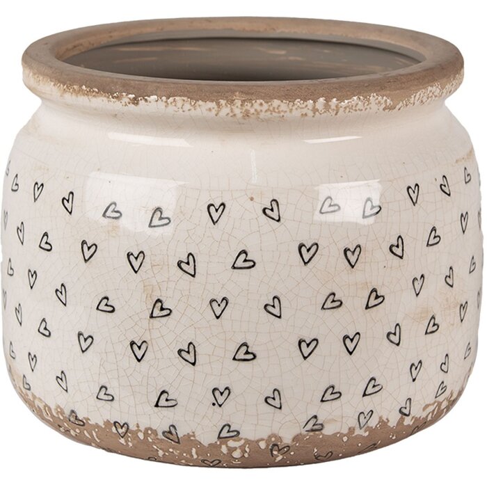 Clayre & Eef 6CE1653L Macetero Beige Negro Ø20x15 cm Cerámica Diseño Corazón
