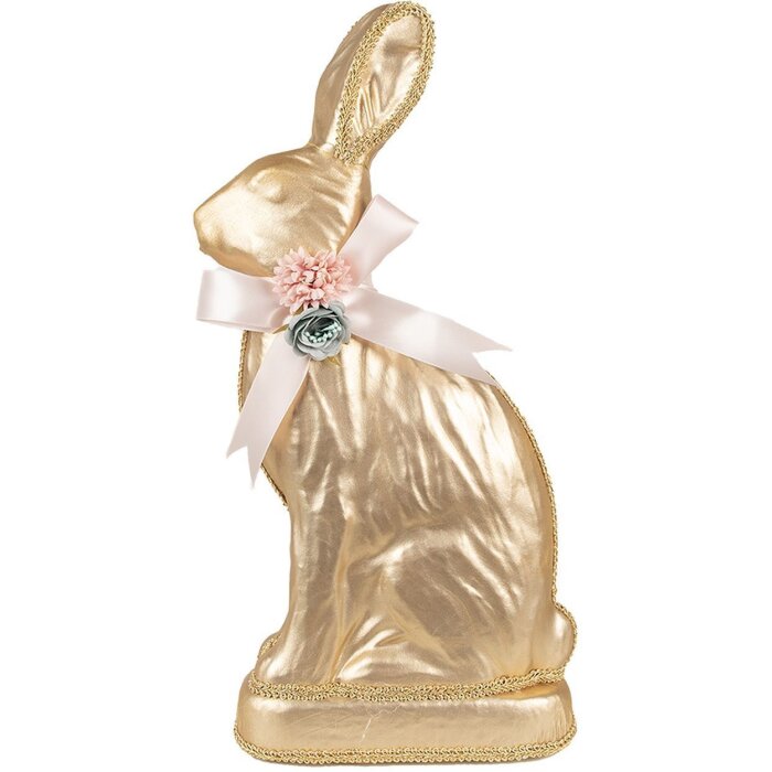 Clayre & Eef conejo decorativo color oro 22x8x40 cm plástico textil