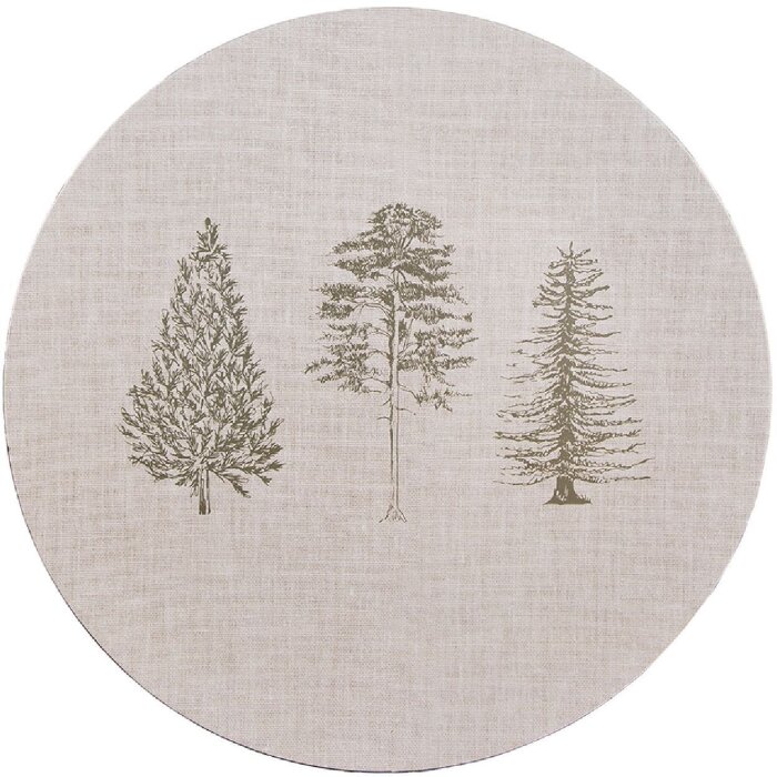Clayre & Eef NPT85 Mantel individual, 33 cm de diámetro, beige con motivos forestales, redondo, ideal para el estilo rústico, superficie fácil de cuidar