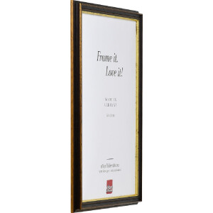 Marco de madera maciza, lacado con estructura de madera visible, marco con borde dorado