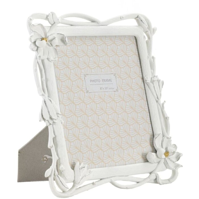 Marco para fotos de 20x25?cm, dimensiones totales 29,3x3x33,5?cm, poliresina y cristal, blanco, con malla floral ornamentada, puede colocarse vertical u horizontalmente, elegante y versátil para recuerdos con estilo