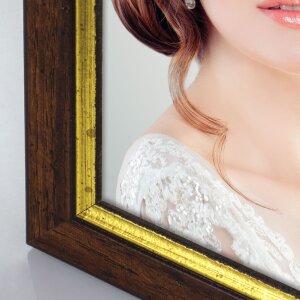 Marco de madera ZEP, con borde interior dorado, perfil plano de anchura media